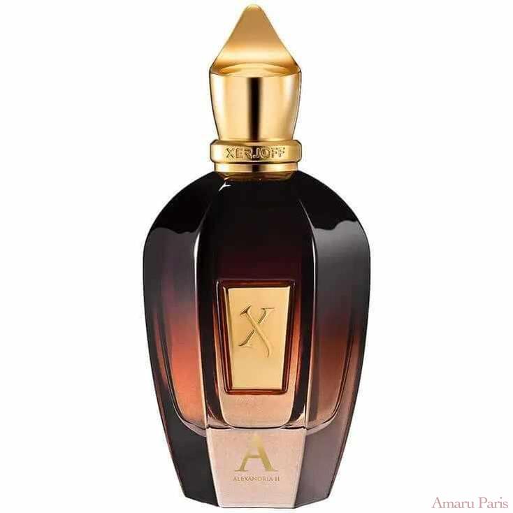 Alexandria II von Xerjoff ist ein Amber Woody-Duft für Frauen und Männer. Alexandria II wurde 2012 auf den Markt gebracht. Die Nase hinter diesem Duft ist Chris Maurice. Die Kopfnoten sind Palisanderholz, Lavendel, Zimt und Apfel; Die Herznoten sind Rose, Zeder und Maiglöckchen; Die Basisnoten sind Agarholz (Oud), Sandelholz, Amber, Vanille und Moschus.