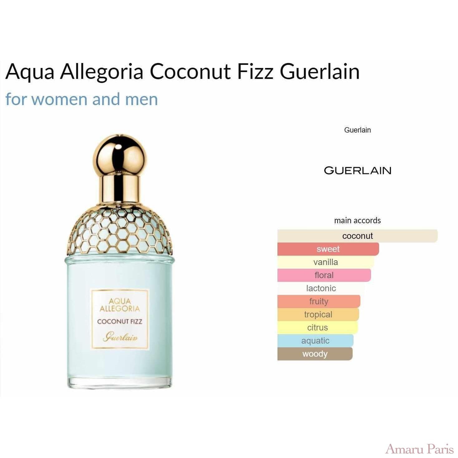 Aqua Allegoria Coconut Fizz von Guerlain ist ein aromatisch-fruchtiger Duft für Frauen und Männer. Aqua Allegoria Coconut Fizz wurde 2019 auf den Markt gebracht. Die Nase hinter diesem Duft ist Delphine Jelk. Die Kopfnoten sind Kokosnektar und Bergamotte; Die Herznoten sind Wasserfrucht und Freesie; Die Basisnoten sind Sandelholz und Tonkabohne.
