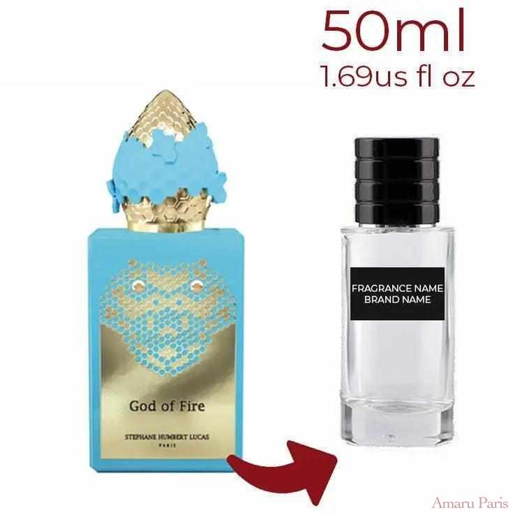God of Fire von Stéphane Humbert Lucas 777 ist ein holziger Amberduft für Frauen und Männer. Dies ist ein neuer Duft. God of Fire wurde 2022 auf den Markt gebracht. Die Nase hinter diesem Duft ist Stéphane Humbert Lucas. Die Kopfnoten sind Mango, Zitrone, Ingwer und rote Beeren; die Herznoten sind holzige Noten, Cumarin und Jasmin; die Basisnoten sind Moschus, Amber, Adlerholz (Oud) und Cypriolöl oder Nagarmotha.