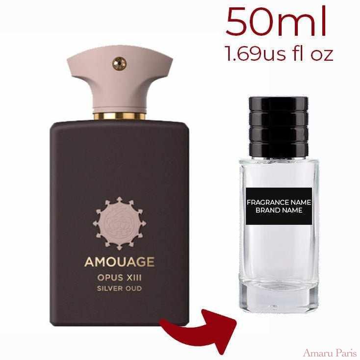Opus XIII – Silbernes Oud von Amouage ist ein orientalischer, holziger Duft für Frauen und Männer. Opus XIII – Silbernes Oud wurde 2021 auf den Markt gebracht. Die Nase hinter diesem Duft ist Cécile Zarokian. Die Kopfnoten sind Cypriolöl oder Nagarmotha, Patchouli und Virginiazeder; Die Herznoten sind Agarholz (Oud) und Madagaskar-Vanille; Die Basisnoten sind Bibergeil, Birke, Ambra und Guajakholz.