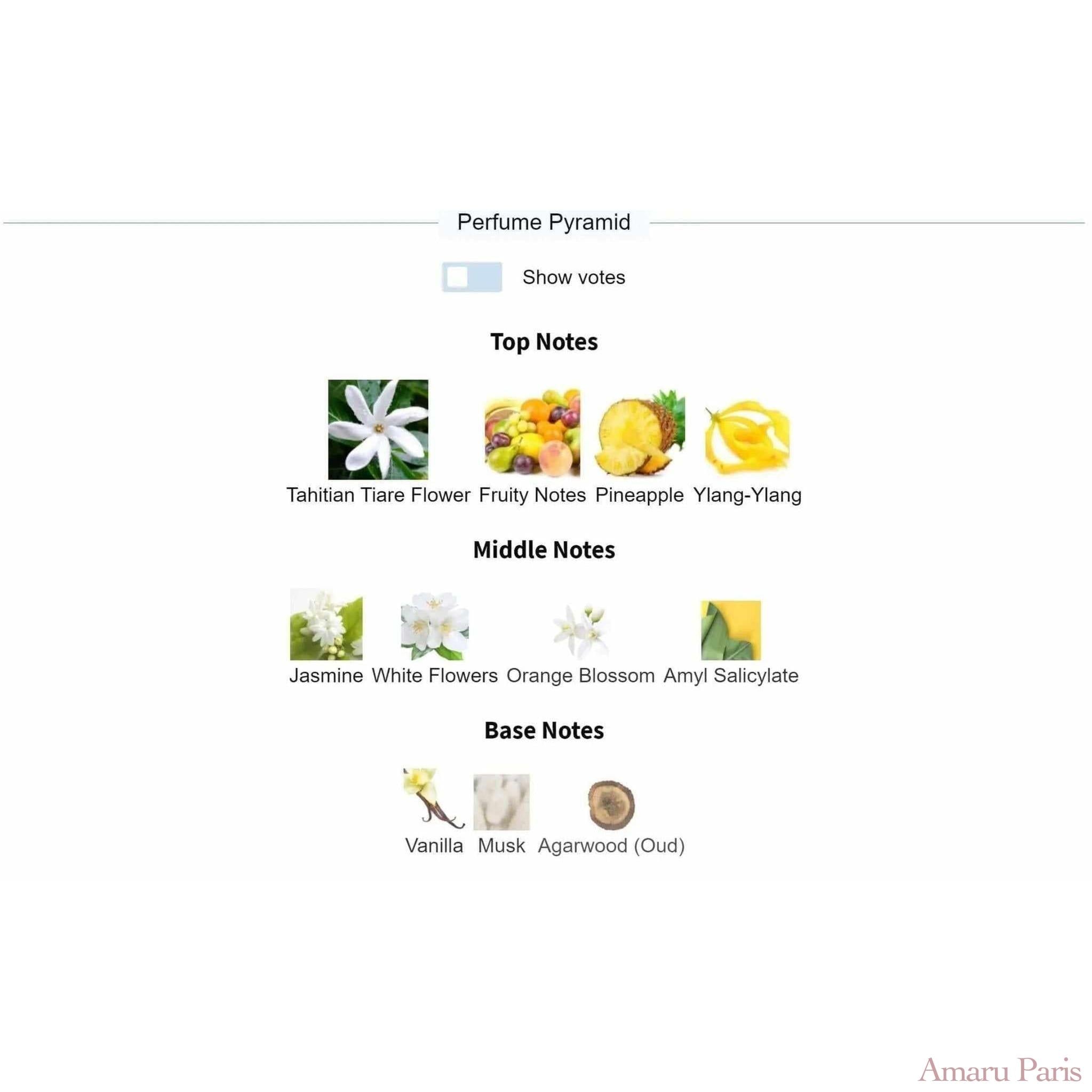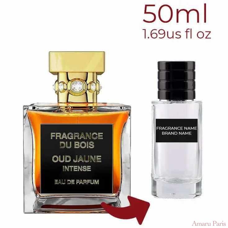 Oud Jaune Intense von Fragrance Du Bois ist ein bernsteinfarbener Blumenduft für Damen und Herren. Oud Jaune Intense wurde 2013 auf den Markt gebracht. Die Nase hinter diesem Duft ist Natalie Gracia-Cetto. Die Kopfnoten sind Tahiti-Tiare-Blume, fruchtige Noten, Ananas und Ylang-Ylang; Die Herznoten sind Jasmin, weiße Blüten, Orangenblüte und Amylsalicylat; Die Basisnoten sind Vanille, Moschus und Agarholz (Oud).