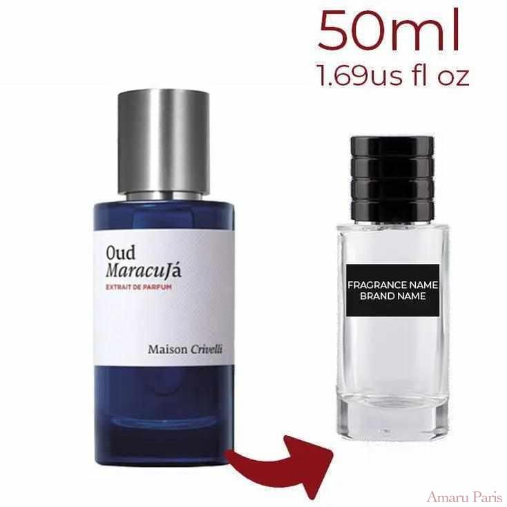 Oud Maracujá von Maison Crivelli ist ein Lederduft für Frauen und Männer. Dies ist ein neuer Duft. Oud Maracujá wurde 2023 auf den Markt gebracht. Die Nase hinter diesem Duft ist Jordi Fernández. Die Kopfnoten sind Passionsfrucht, fruchtige Noten, türkische Rose und Safran; die Herznoten sind Adlerholz (Oud), indonesisches Patchouliblatt und Benzoe; die Basisnoten sind Leder, Akigalaholz, Labdanum, Amber und Vanille.