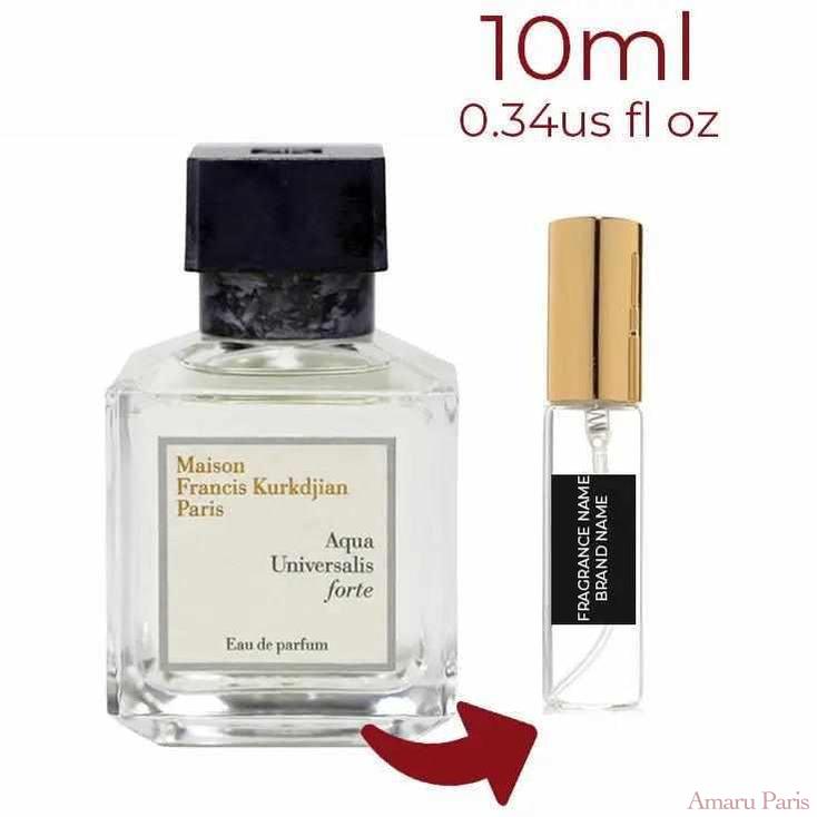 Aqua Universalis Forte de Maison Francis Kurkdjian est un parfum floral boisé musqué pour homme et femme. Aqua Universalis Forte a été lancé en 2011. Le nez derrière ce parfum est Francis Kurkdjian. Les notes de tête sont le citron d'Amalfi et la bergamote ; les notes de cœur sont les fleurs blanches, le jasmin et la rose ; les notes de fond sont le musc et les notes boisées.