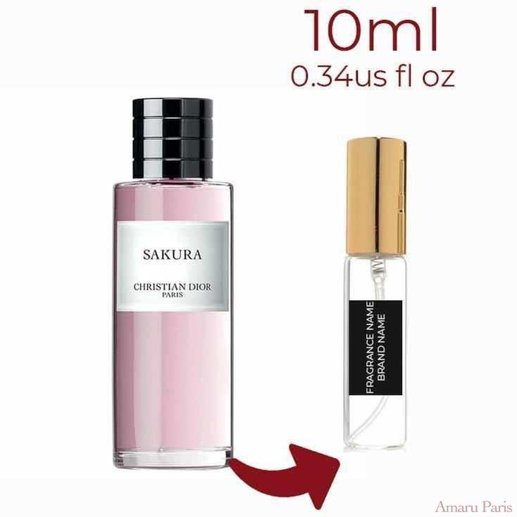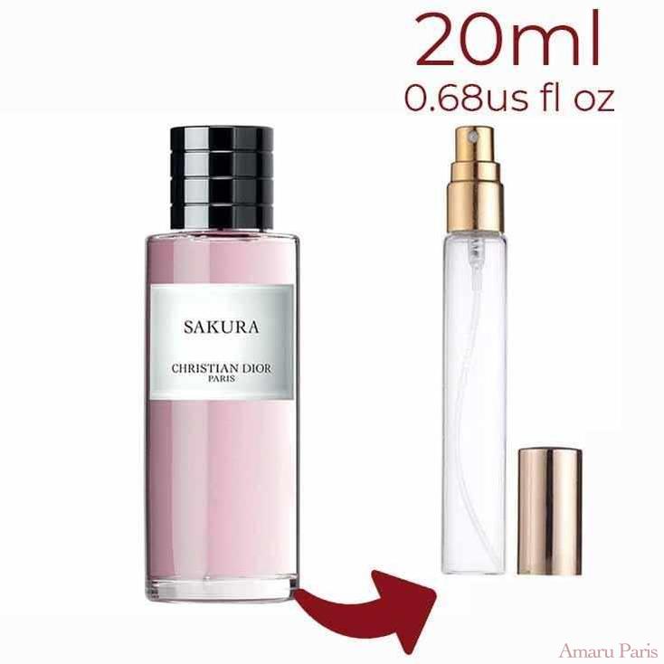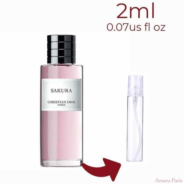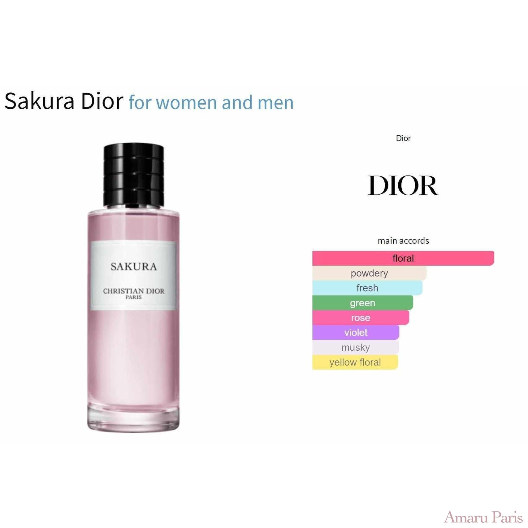 Sakura de Dior est un parfum floral pour femme et homme. Sakura a été lancé en 2018. Le nez derrière ce parfum est François Demachy. La note de tête est Notes vertes ; les notes de cœur sont Fleur de cerisier du Japon, Rose, Jasmin et Hédione ; les notes de fond sont Mimosa, Musc blanc et Violette.