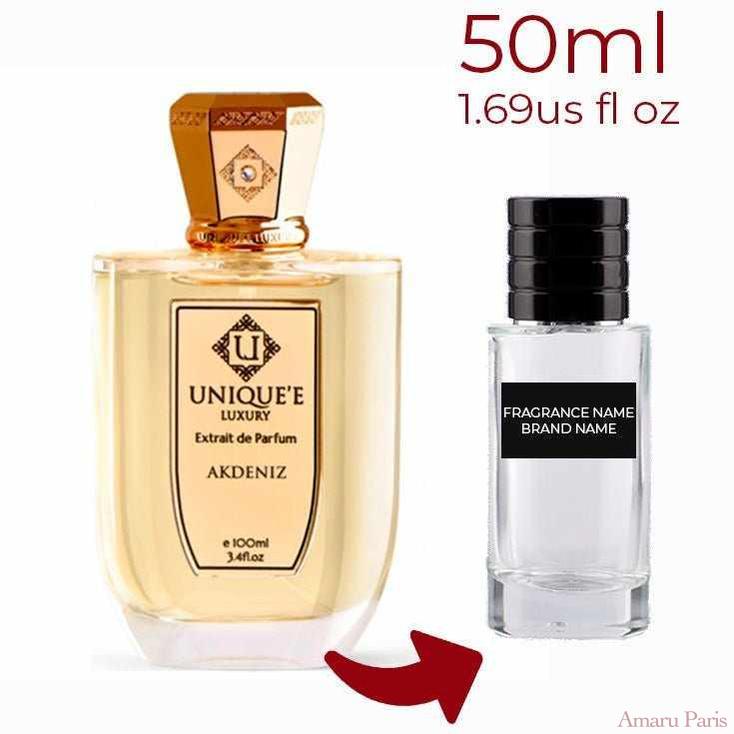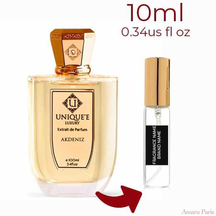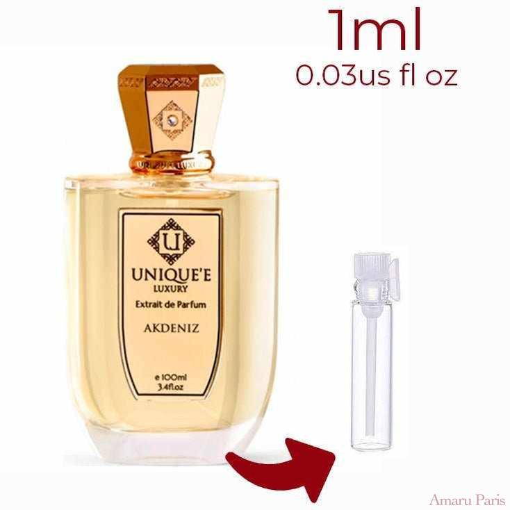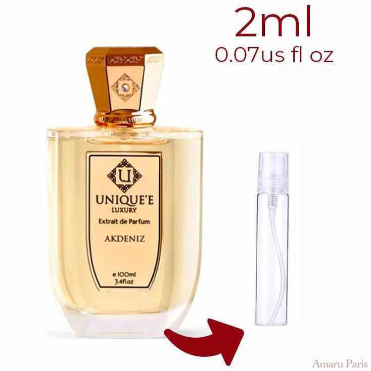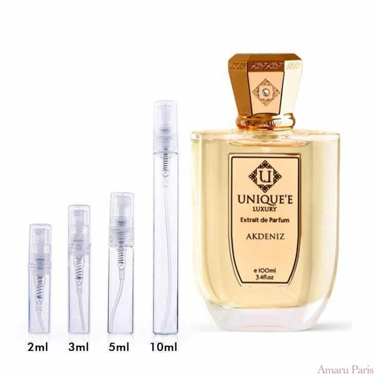 Akdeniz de Unique'e Luxury est un parfum aromatique aquatique pour femmes et hommes. Akdeniz a été lancé en 2019. Les notes de tête sont Notes marines, Pamplemousse et Citron ; les notes de cœur sont Ananas, Myrte, Thym, Pomme, Lavande et Fleurs blanches ; les notes de fond sont Cuir, Cèdre, Musc, Bois de santal, Vanille, Ambre et Patchouli.
