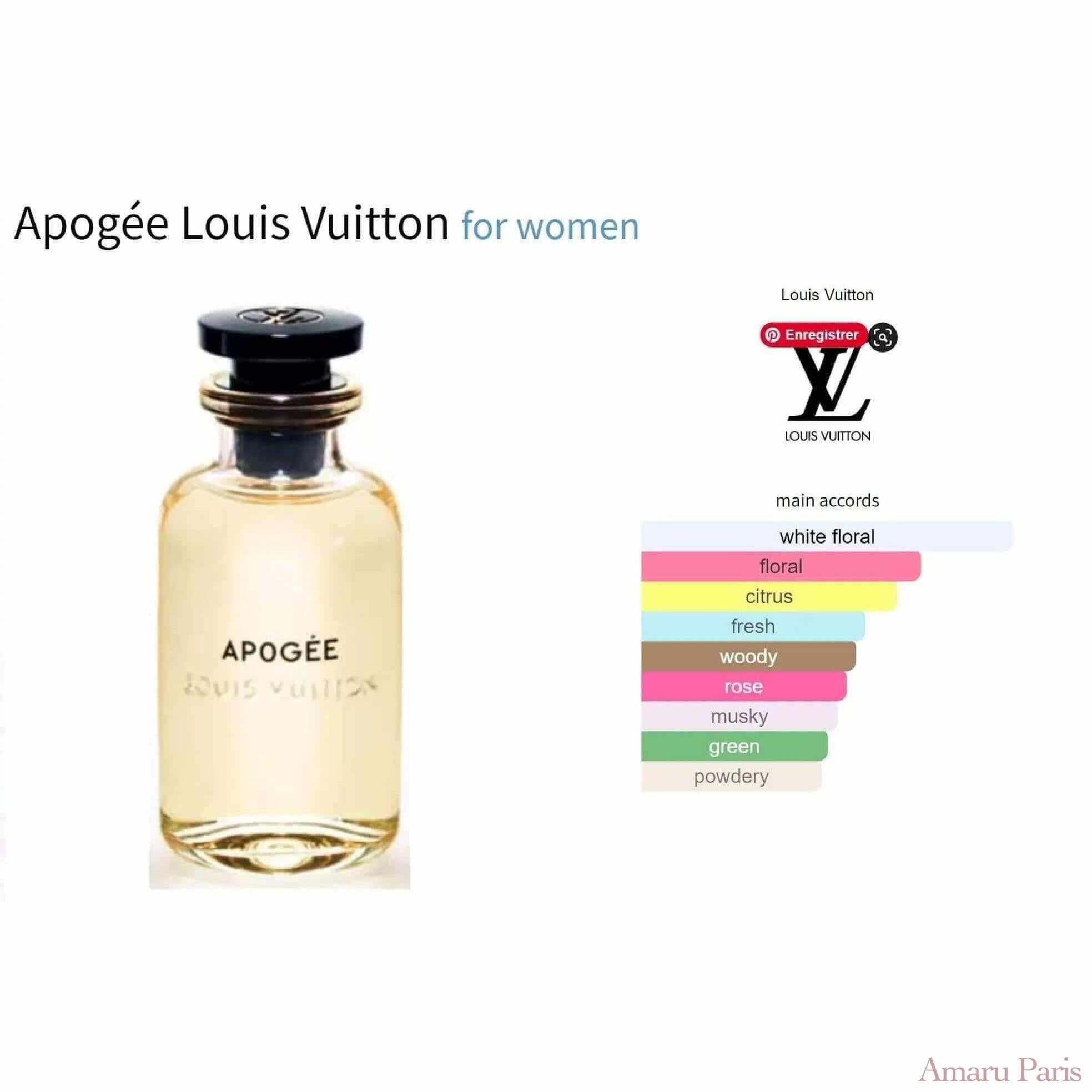 Apogée de Louis Vuitton est un parfum floral pour femme. Apogée a été lancé en 2016. Le nez derrière ce parfum est Jacques Cavallier. Les notes de tête sont la mandarine et l'orange ; les notes de cœur sont le muguet, le magnolia, la rose et le jasmin ; les notes de fond sont le musc blanc, le bois de gaïac et le bois de santal.
