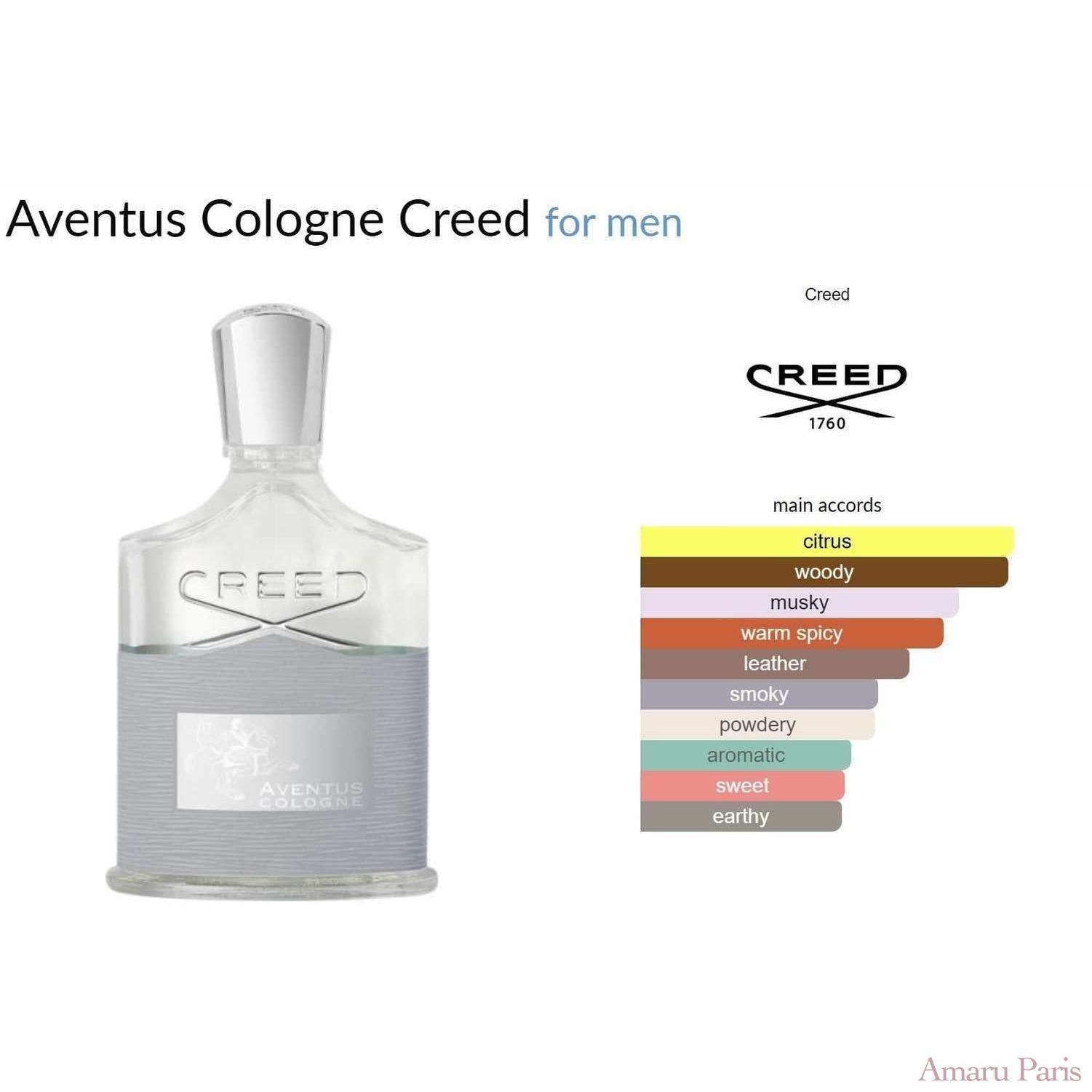Aventus Cologne de Creed est un parfum aromatique fruité pour homme. Aventus Cologne a été lancé en 2018. Le nez derrière ce parfum est Olivier Creed. Les notes de tête sont Mandarine, Gingembre, Poivre rose, Bergamote et Menthe verte ; les notes de cœur sont Vétiver, Patchouli, Bois de santal et Notes ozoniques ; les notes de fond sont Musc, Bouleau, Fève tonka, Styrax et Cèdre.