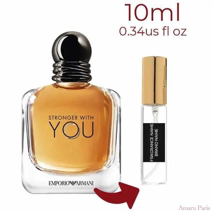 Emporio Armani Stronger With You de Giorgio Armani est un parfum aromatique fougère pour homme. Emporio Armani Stronger With You a été lancé en 2017. Le nez derrière ce parfum est Cécile Matton. Les notes de tête sont Châtaigne et Sucre ; les notes de cœur sont Sauge et Lavande ; les notes de fond sont Vanille et Fumée.