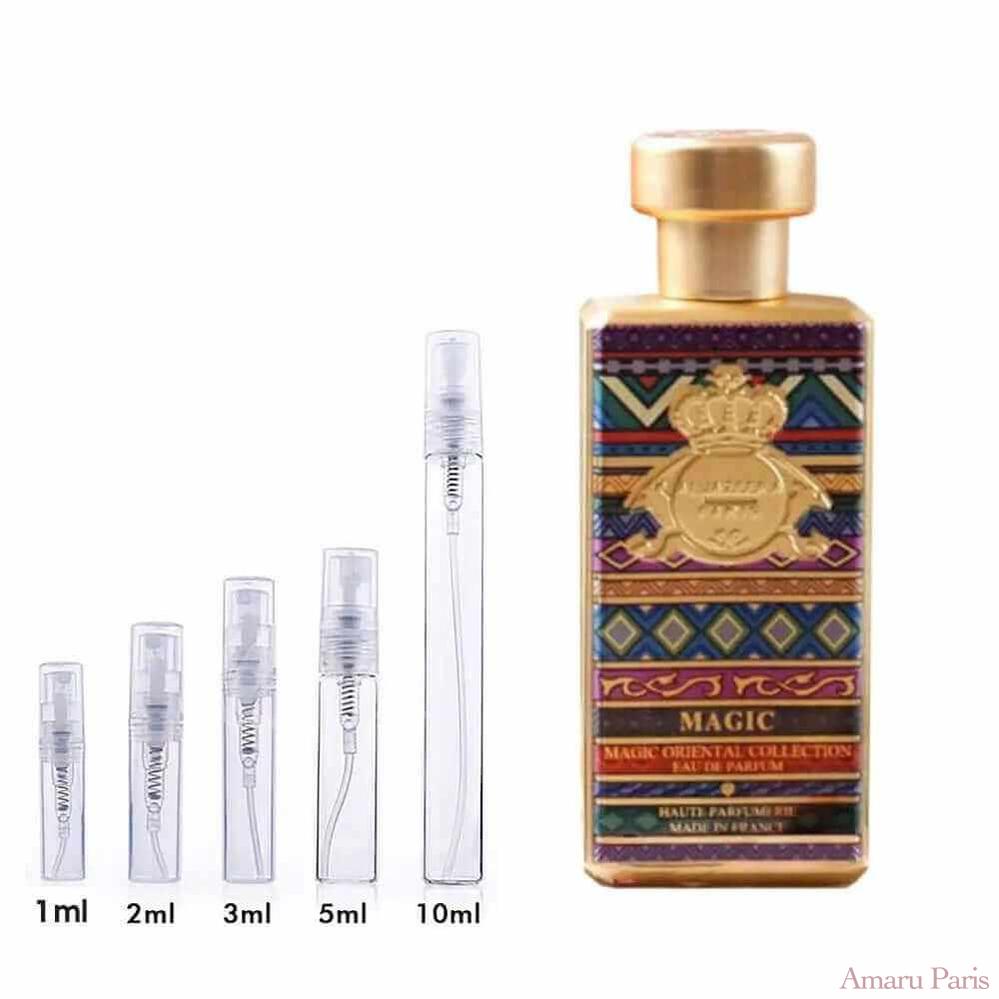 Magic de Al-Jazeera Perfumes est un parfum floral ambré pour femme. Magica été lancé en 2016. Le nez derrière ce parfum est Loc Dong. Les notes de tête sont le sel et les notes ozoniques ; les notes de cœur sont la rose turque et la praline ; les notes de fond sont l'ambre extrême, la vanille et le patchouli.