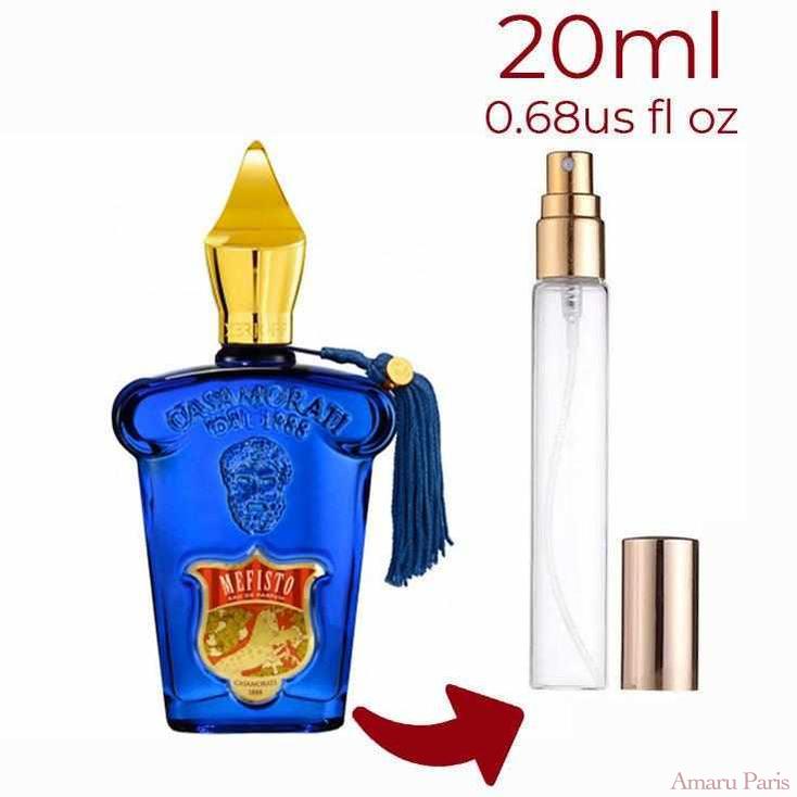Mefisto de Xerjoff est un parfum aromatique d'agrumes pour homme. Mefisto a été lancé en 2009. Les notes de tête sont Pamplemousse, Bergamote et Citron d'Amalfi ; les notes de cœur sont Lavande, Iris et Rose ; les notes de fond sont Musc, Bois de santal, Cèdre de Virginie et Ambre.