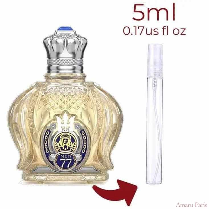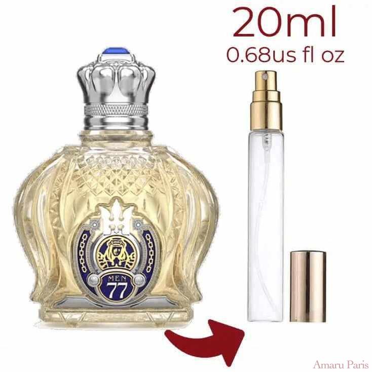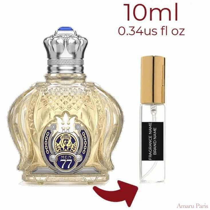 Opulent Shaik Classic No 77 de Shaik est un parfum ambré pour homme. Les notes de tête sont Lavande, Bergamote, Citron et Basilic ; les notes de cœur sont Pomme, Cannelle, Clou de girofle et Géranium ; les notes de fond sont Vanille, Musc, Mousse de chêne, Patchouli, Ciste et Cèdre.