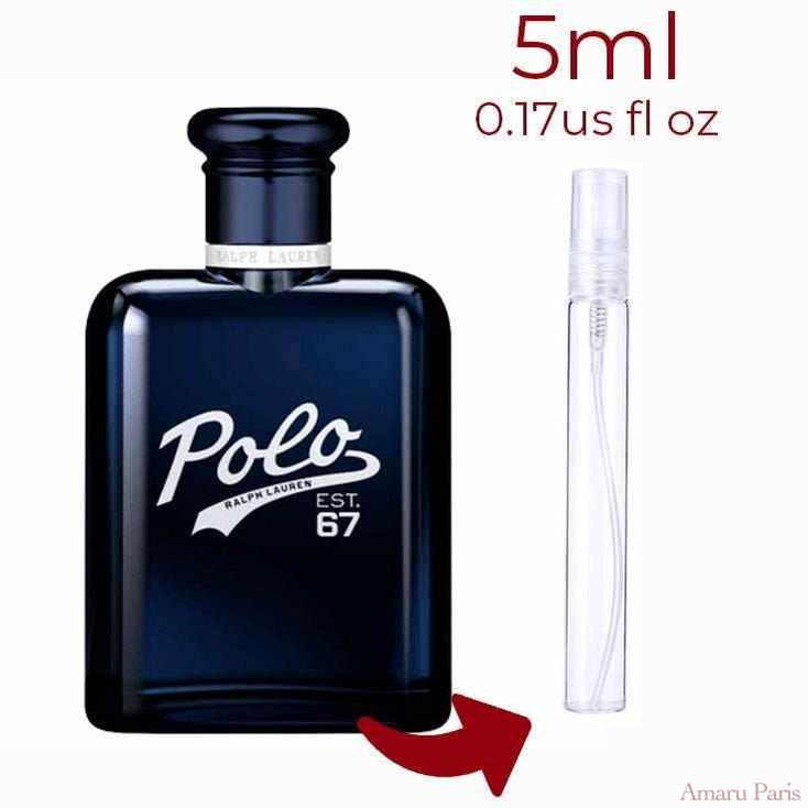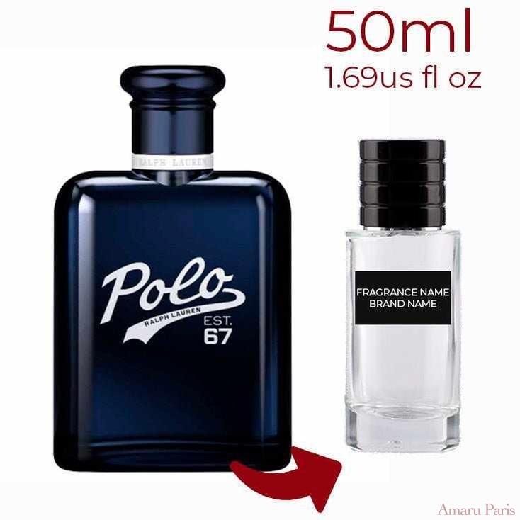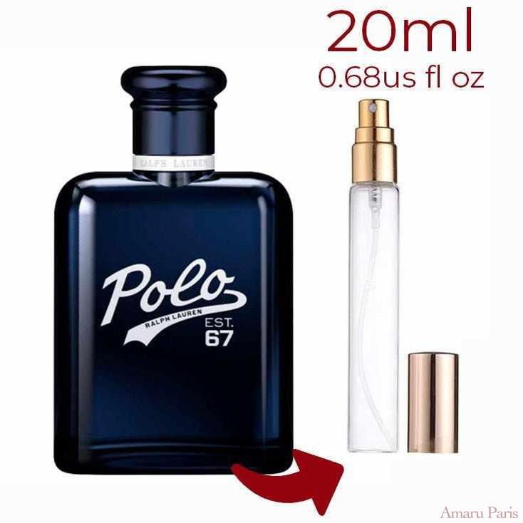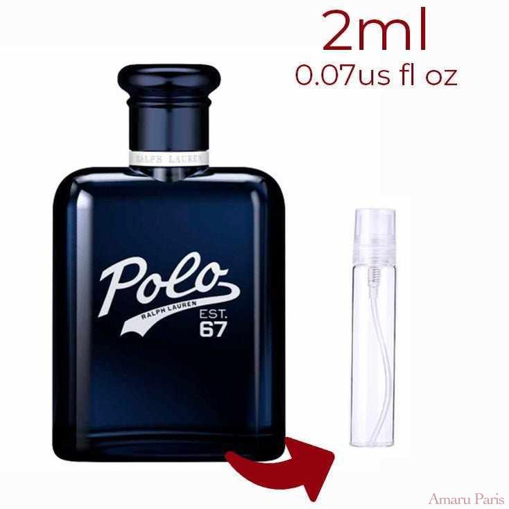 Polo 67 de Ralph Lauren est un parfum boisé aromatique pour homme. Il s'agit d'une nouvelle fragrance. Polo 67 a été lancé en 2024. Le nez derrière ce parfum est Marie Salamagne. Les notes de tête sont Ananas, Bergamote et Citron ; les notes de cœur sont Sauge, Genévrier et Cynorrhodon ; les notes de fond sont Vétiver, Patchouli et Verge d'or.
