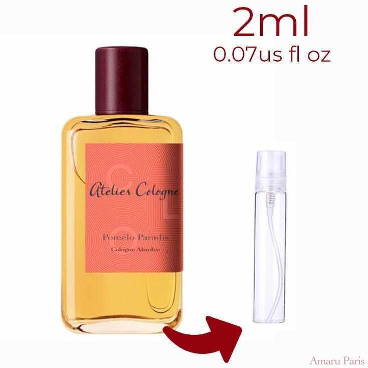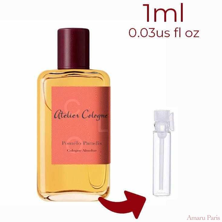 Pomelo Paradis de Atelier Cologne est un parfum aromatique aux agrumes pour femmes et hommes. Pomelo Paradis a été lancé en 2015. Les notes de tête sont le pamplemousse rose, la mandarine de Calabre et le cassis ; les notes de cœur sont la fleur d'oranger, la menthe et la rose bulgare ; les notes de fond sont le vétiver, l'ambre et l'iris.