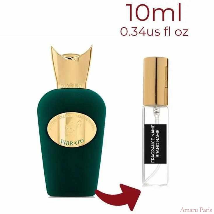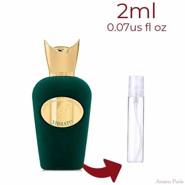 Vibrato de Sospiro Perfumes est un parfum pour femmes et hommes. Il s'agit d'une nouvelle fragrance. Vibrato a été lancé en 2022. Le nez derrière ce parfum est Christian Provenzano. Les notes de tête sont le pamplemousse, la bergamote, le jasmin et le magnolia ; les notes de cœur sont le gingembre, les notes herbacées et les notes poudrées ; les notes de fond sont le musc, le cèdre, l'ambre, la racine d'iris et le patchouli.