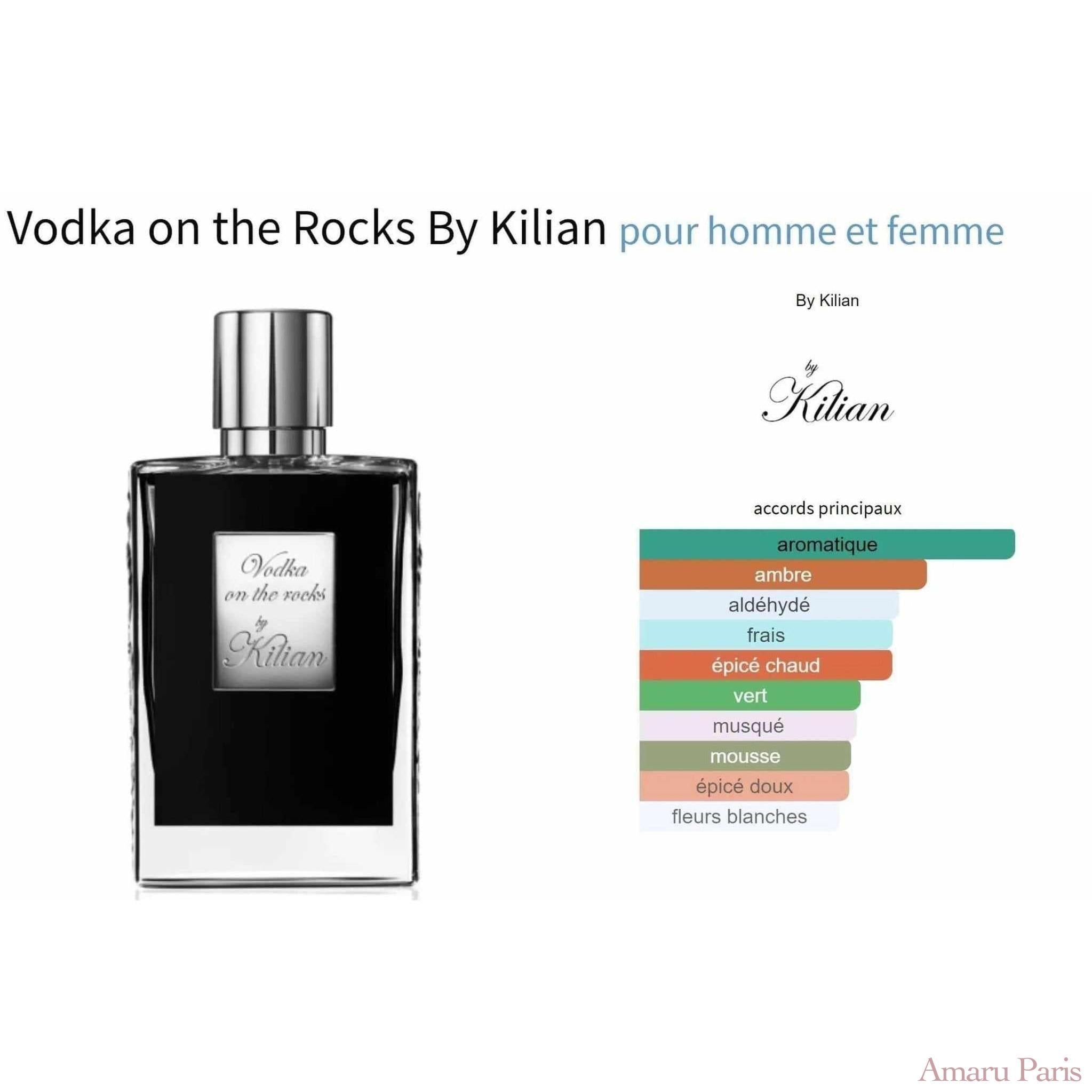 Vodka on the Rocks de By Kilian est un parfum aromatique pour femmes et hommes. Vodka on the Rocks a été lancé en 2014. Le nez derrière ce parfum est Sidonie Lancesseur. Les notes de tête sont la coriandre, les aldéhydes et la cardamome ; les notes de cœur sont la rhubarbe, le muguet et la rose rose ; les notes de fond sont l'ambroxan, la mousse de chêne et le bois de santal.