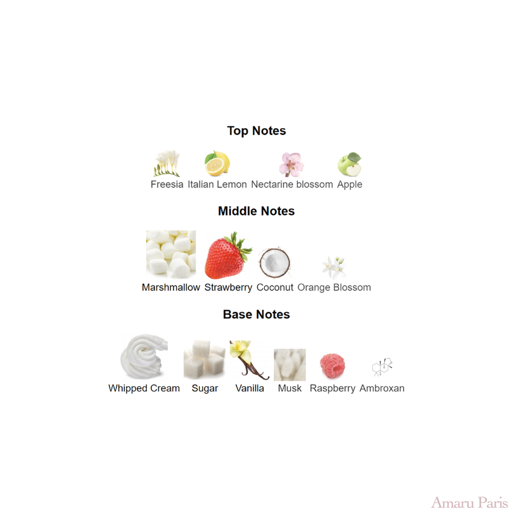 Yum Boujee Marshmallow | 81 de Kayali Fragrances est un parfum floral fruité et gourmand pour femme. Il s'agit d'un nouveau parfum. Yum Boujee Marshmallow | 81 a été lancé en 2024. Le nez derrière ce parfum est Gabriela Chelariu. Les notes de tête sont le freesia, le citron d'Italie, la fleur de nectarine et la pomme ; les notes de cœur sont la guimauve, la fraise, la noix de coco et la fleur d'oranger ; les notes de fond sont la crème fouettée, le sucre, la vanille, le musc, la framboise et l'ambroxan.